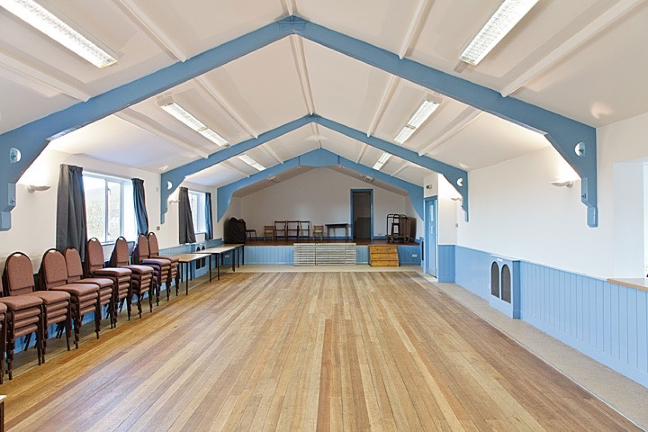 Please contact Richard Heacock, preferred contact via email:- richardheacock@mac.com. or tel:- 07899 967221. The hall is very well equipped including a stage, a high definition projector with an electrically operated screen and a sound system. Broadband and WiFi. Baby Grand piano.